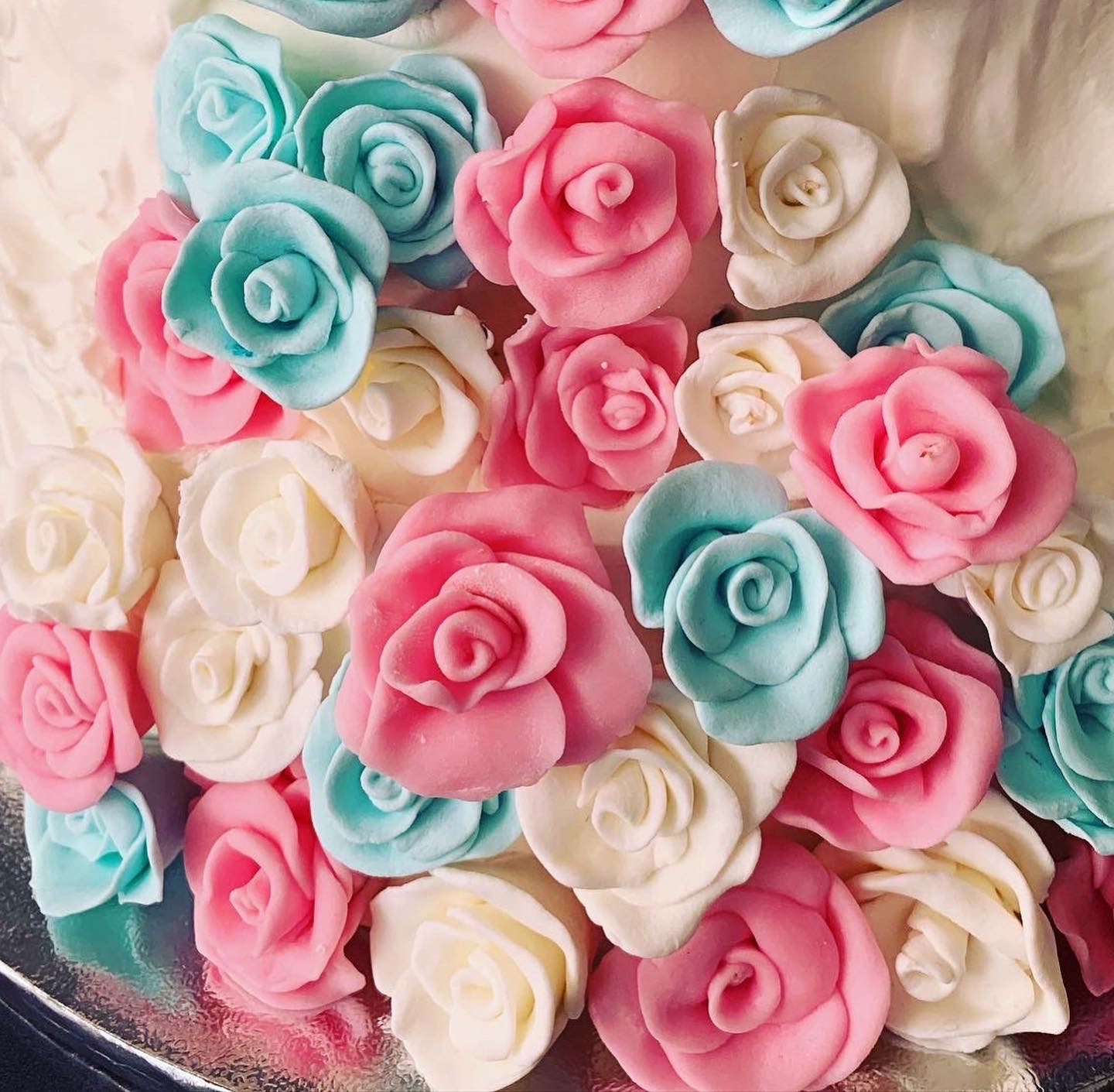 Rosas de fondant moldeadas a mano en cada pétalo. Un trabajo artesanal que convierte cada tarta en una obra de arte comestible.